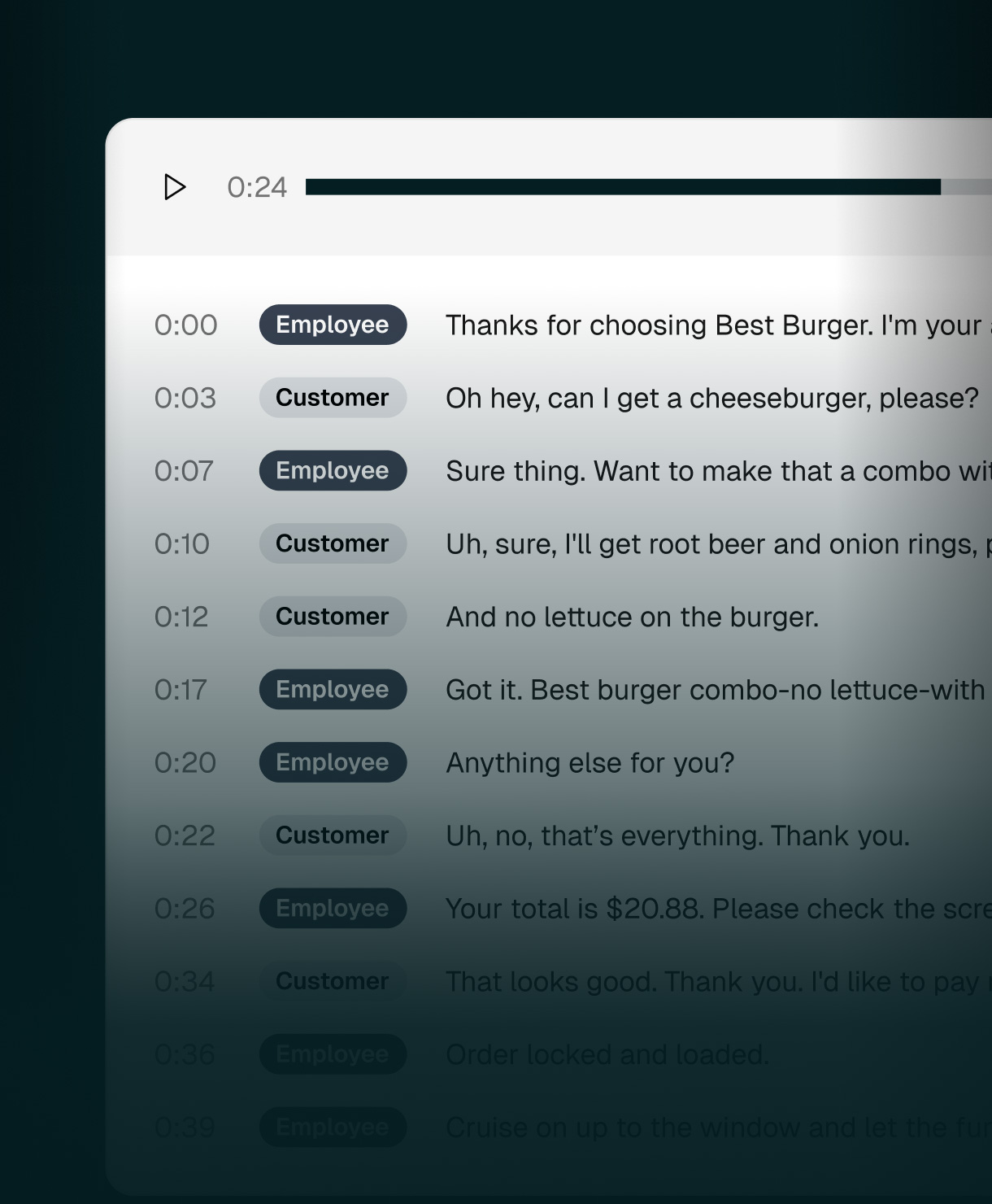 DT Analyzer is built on continuous drive-thru recording and analysis, so performance insights are based on real conversations across the day, not spot checks, averages, or assumptions.